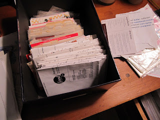 When you find a recipe on line, you print it out on an 8x10 piece of paper. In the past, I folded them up and stored them away.